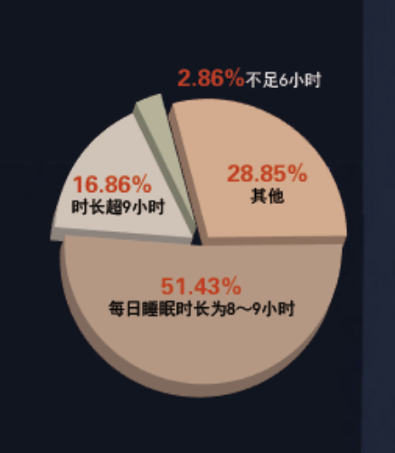 而根据教育部2021年发布的“睡眠令”:小学生每天睡眠时间应达到10小时,初中生应达到9小时,高中生应达到8小时。显然大部分学生的睡眠时间没有达标。